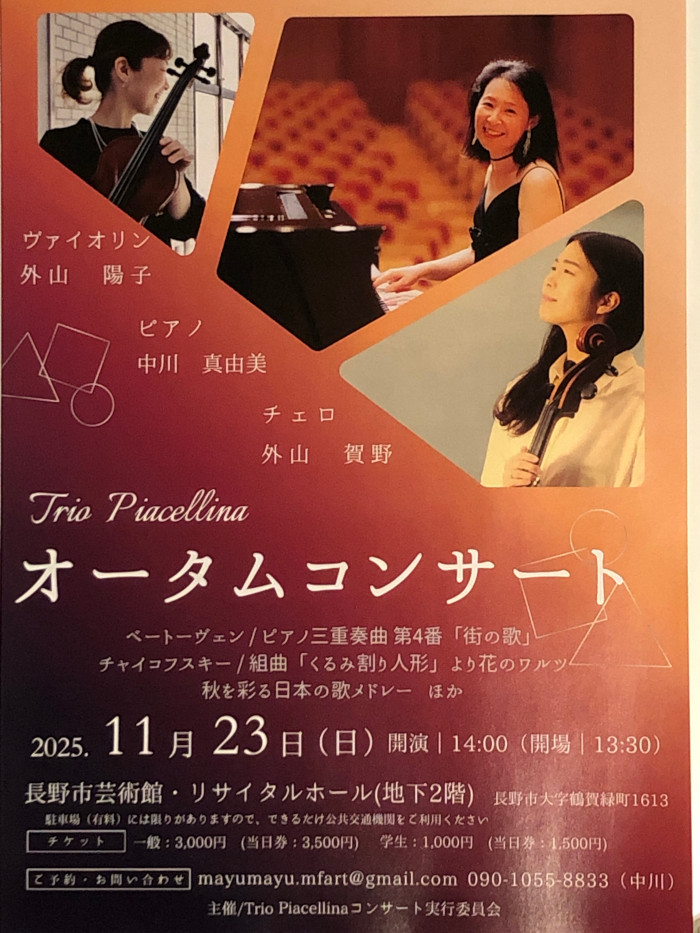 Trio Piacellina(トリオ ピアチェリーナ)オータムコンサート | 信毎読者サイト なーのちゃんクラブ