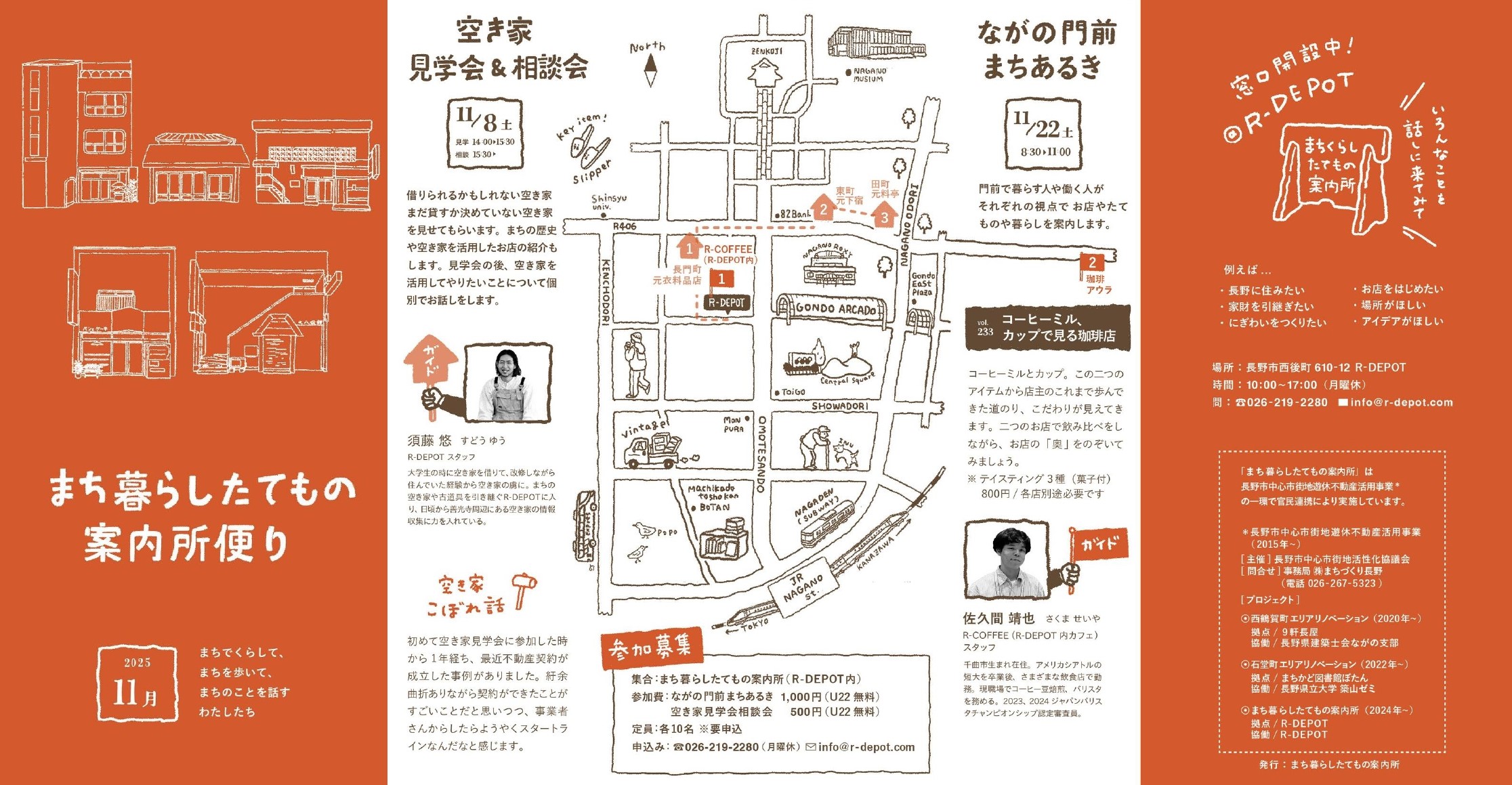 | お問い合わせ先 | まち暮らしたてもの案内所(R-DEPOT内)または、中心市街地活性化協議会事務局(株式会社まちづくり長野) info@r-depot.com |