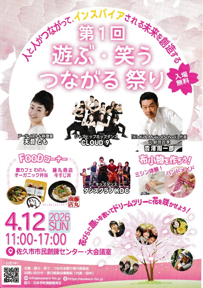 お問い合わせ先 遊ぶ・笑う・つながる祭り実行委員会 担当:田中