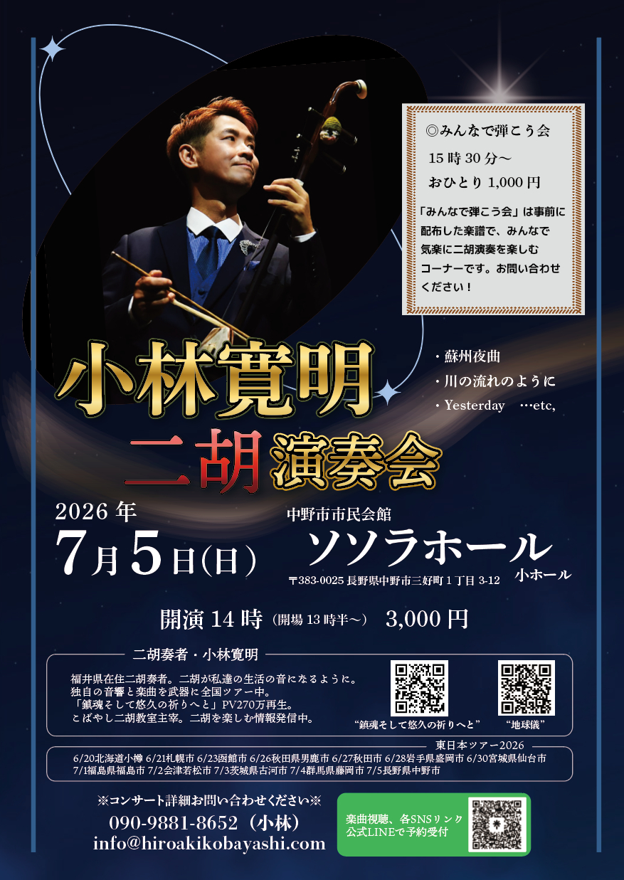 小林寛明二胡演奏会 | 信毎読者サイト なーのちゃんクラブ