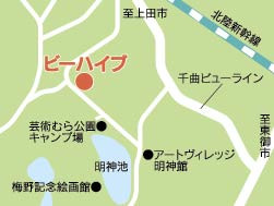 日本の各地を移動しながら養蜂業を営む村上康裕さん、亜紀子さん夫妻が開くカフェと蜂蜜販売のお店です。店名の「ビーハイブ」は蜂の巣箱と巣箱の内部のにぎやかな集まりのことで、人と人とがわいわいと楽しく集えるように、との願いが込められています。
