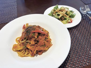 カフェを併設。丁寧にドリップした自慢のコーヒーや、パスタなどのランチ、デザートがそろい、ギャラリー観覧と合わせて楽しめる。