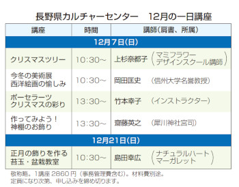 12月7日と21日「一日講座」長野県カルチャーセンター