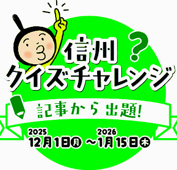 信濃毎日新聞デジタルは今月、4周年を迎えます。ご愛読に感謝してクイズキャンペーン「信州クイズチャレンジ~記事から出題!~」を来年1月15日(木)まで開催します。クイズに解答して信州通になりませんか。